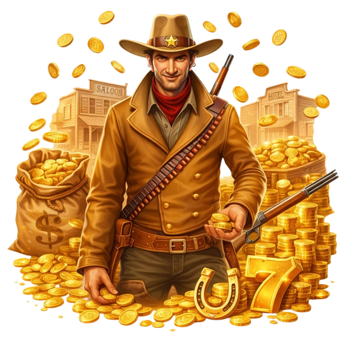 - • Theme: Wild West, cowboys, gold, frontier atmosphere